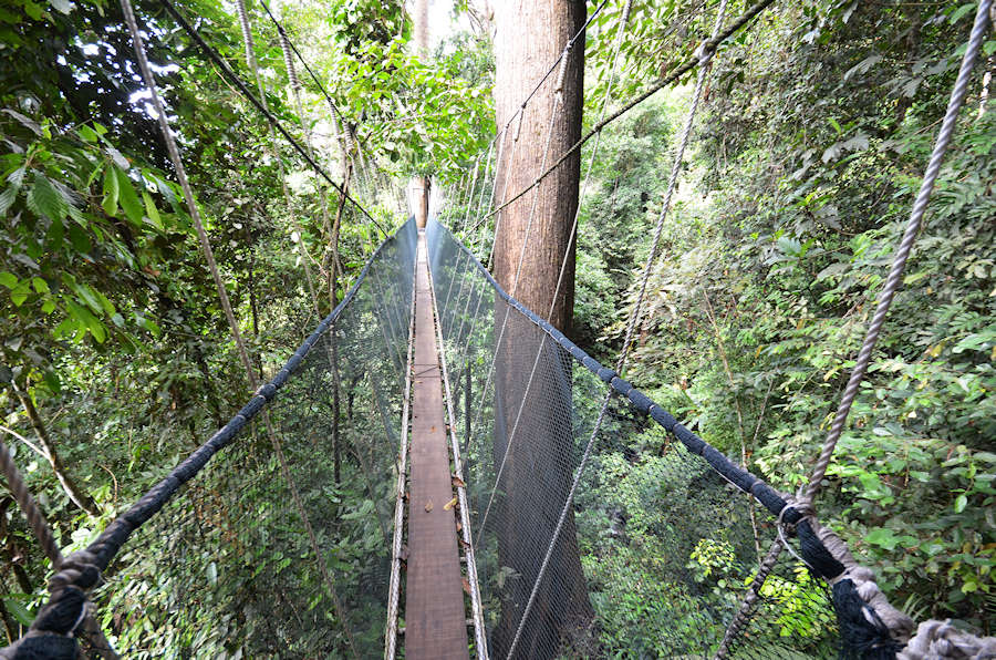 Weiter geht es nun zum nahe gelegenen Kipungit-Wasserfall, um dieses spektakuläre Naturwunder zu bestaunen. Alternativ können Sie sich für eine Wanderung zum Canopy Walk entscheiden, einer Hängebrücke, die 40 Meter über dem Waldboden schwebt. Wer den Nervenkitzel sucht, kann von dieser schwankenden, von Menschenhand errichteten Brücke aus die Aussicht auf den Regenwald, die Baumkronen und die fernen Hügel genießen. Anschließend Mittagessen in einem netten örtlichen Restaurant.