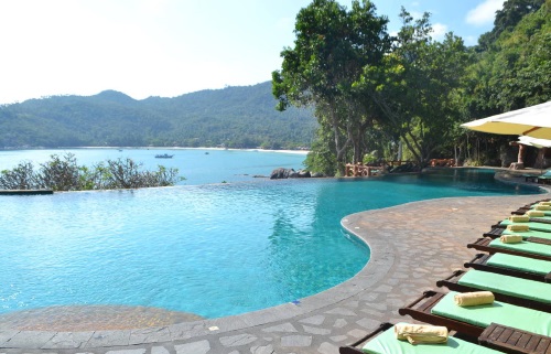 Strand & Pool: Den Gästen steht ein ansprechender Infinitypool mit Jacuzzi, kleinem Wasserfall, Sonnenliegen, Pool Deck Bar (mit Drinks und leichten Mittagsgerichten) und herrlicher Aussicht zur Verfügung.
