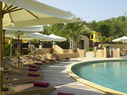 Der Hauptpool ist als "infinity pool" angelegt und so hat man das Gefühl beim Schwimmen vereinen sich Poolende und Horizont. Hier gibt es ein Jacuzzi. Bei den Gartenvillen im südlichen Teil der Anlage finden Sie, von tropischen Bäumen und blühenden Sträuchern harmonisch beschattet, einen weiteren kleinen Pool. An der schrofferen Westküste liegt die "Sunset Bar" und das Fitnessstudio.