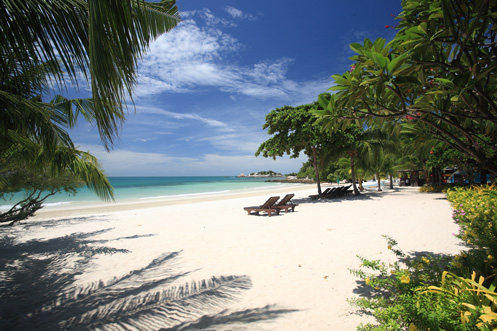Strand und Pool: Hier wird die Insel Koh Samed schon relativ schmal. So finden Sie an der Ostküste einen traumhaften Sandstrand in einer privaten Bucht. Hier kann man das ganze Jahr über gut im Meer schwimmen, der Sand ist fein und sehr hell. Das Wasser ist normalerweise sehr klar und an den angrenzenden Felsenstränden auch gut zum Schnorcheln geeignet. Liegen und Sonnenschirme stehen am Strand und den beiden Pools zur Verfügung.
