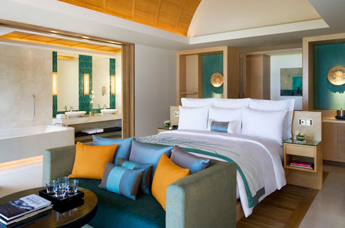 So wohnen Sie: Es gibt 150 Deluxe Zimmer, vier Suiten, 21 Pool Villen, vier Oceanfront Pool Villen und eine Oceanfront Pool Villa mit drei Schlafzimmern. Alle Zimmer, Villen und Suiten sind freundlich und hell gehalten und mit dem für ein 5-Sterne-Hotel heute üblichen Komfort ausgestattet. Sie verfügen entweder über Balkon oder Terrasse.