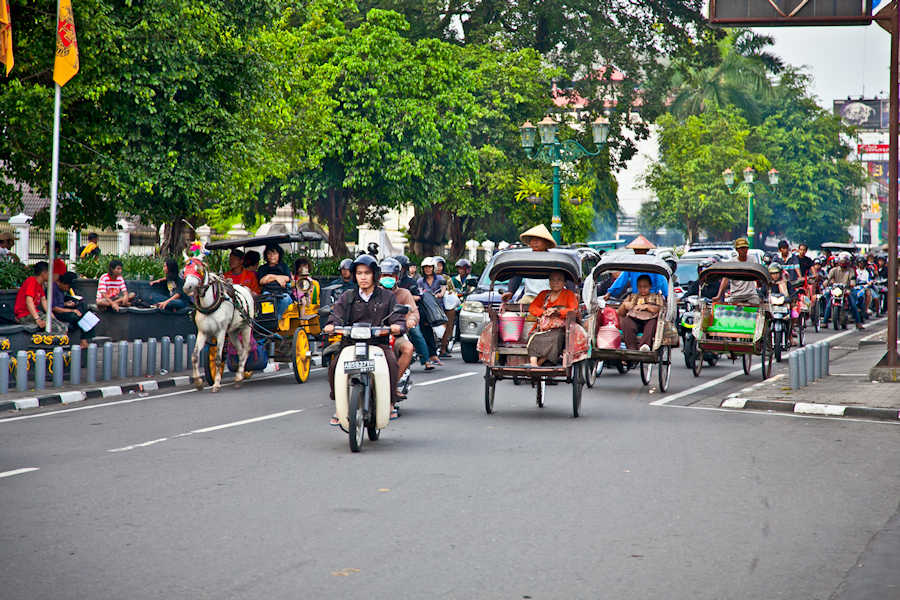 Nach dem Frühstück Aufbruch zur Stadtrundfahrt. Mit seinen zirka 1 Mio. Einwohnern und einer Vielzahl an Kunsthandwerkstätten, Hochschulen, Universitäten, Kulturdenkmälern und Pflege der alten Traditionen ist Yogyakarta nicht nur die wichtigste Stadt Zentraljavas, sondern auch die kulturelle Hauptstadt Javas. Sie besichtigen u. a. den Kraton (Sultanspalast von Yogyakarta). Je nach Besuchstag kann im Tempel auch eine kulturelle Darbietung stattfinden, die von Golek Menak-Puppen bis hin zu klassischer javanischer Poesie, bekannt als Macapat, reicht. Nach einer 30-minütigen Fahrt mit dem Becak (ähnlich einem Cyclo oder einer Trishaw) erkunden Sie das benachbarte Kauman-Dorf, das in der Nähe des Kraton liegt. Dieses Dorf ist die zentrale Hüterin der islamischen Religion, die vom Sultanat autorisiert wurde. Die kleinen Gassen dieses Dorfes sind so angelegt, dass Lärm und Verkehr möglichst wenig stören, um die Santri, die islamischen Studenten, nicht beim Lernen zu stören. Man sagt auch, dass durch die Sicherstellung, dass die Gassen nur zu Fuß begehbar sind, jeder Mann im Dorf gleich ist.