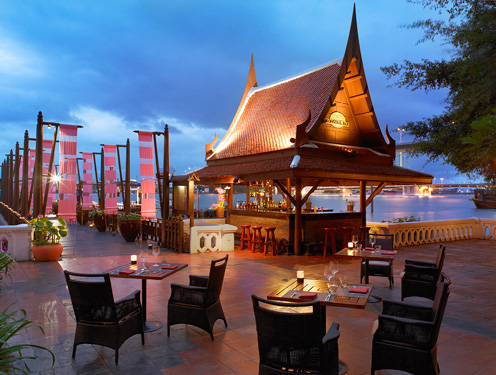 Brio - Italienische Küche von Pasta bis Pizza; Riverside Terrace - Internationale Küche; The Market - Internationale Küche; Elephant Bar - Bar im Innenbereich; Numero Uno - Delikatessen, süße Köstlichkeiten, Kaffeespezialitäten und Backwaren; Longtail Bar - Open-Air-Bar an der Anlegestelle; Loy Nam Bar - Poolbar; Manohra Cruises - Dinner Cruise auf dem Fluss Chao Phraya.