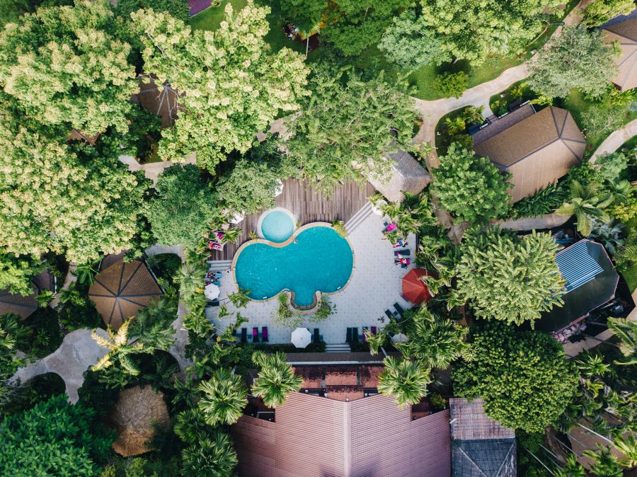 Annehmlichkeiten, Aktivitäten & Service: 2 Swimmingpools mit Kinderpool, Sonnenschirme und Liegen, Thai Herbal Spa, Mon Cultural Theatre, SUP Board, Kajaks, Bamboo Rafting, Palmengarten, Wanderwege, Wäscheservice, WiFi, Verleih von Mountainbikes, Kochunterricht, Kanuverleih.