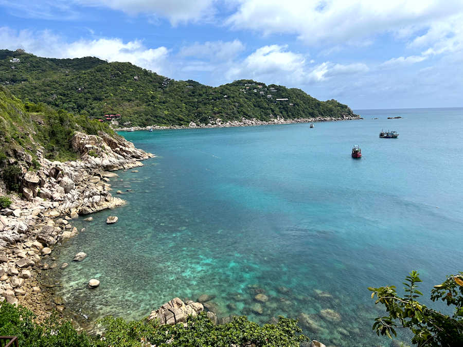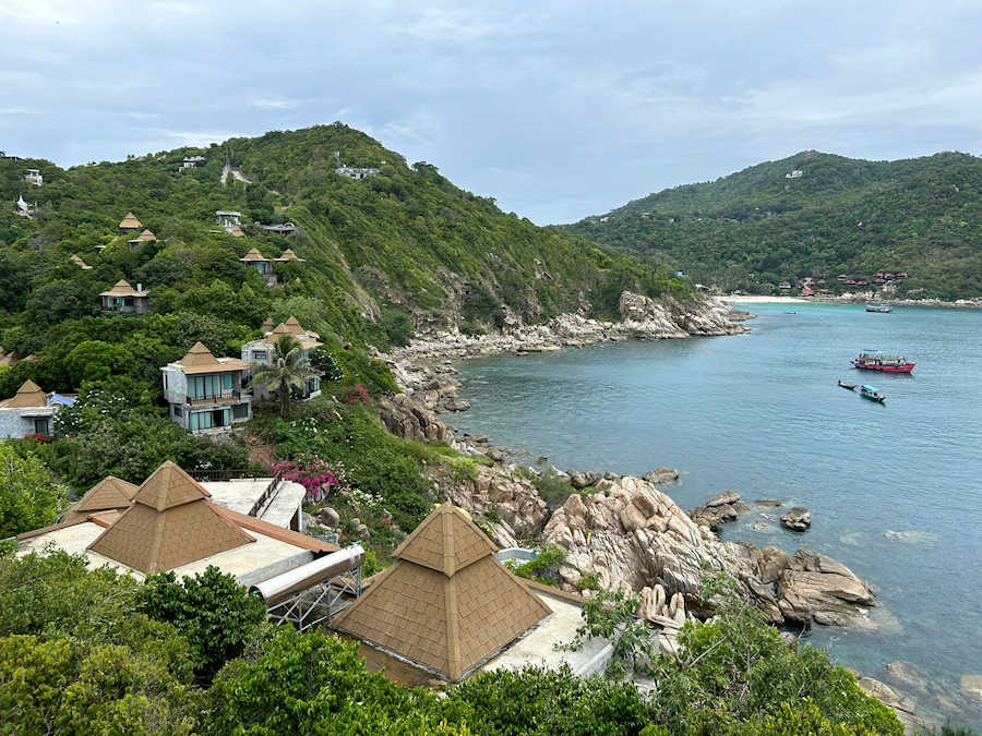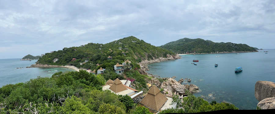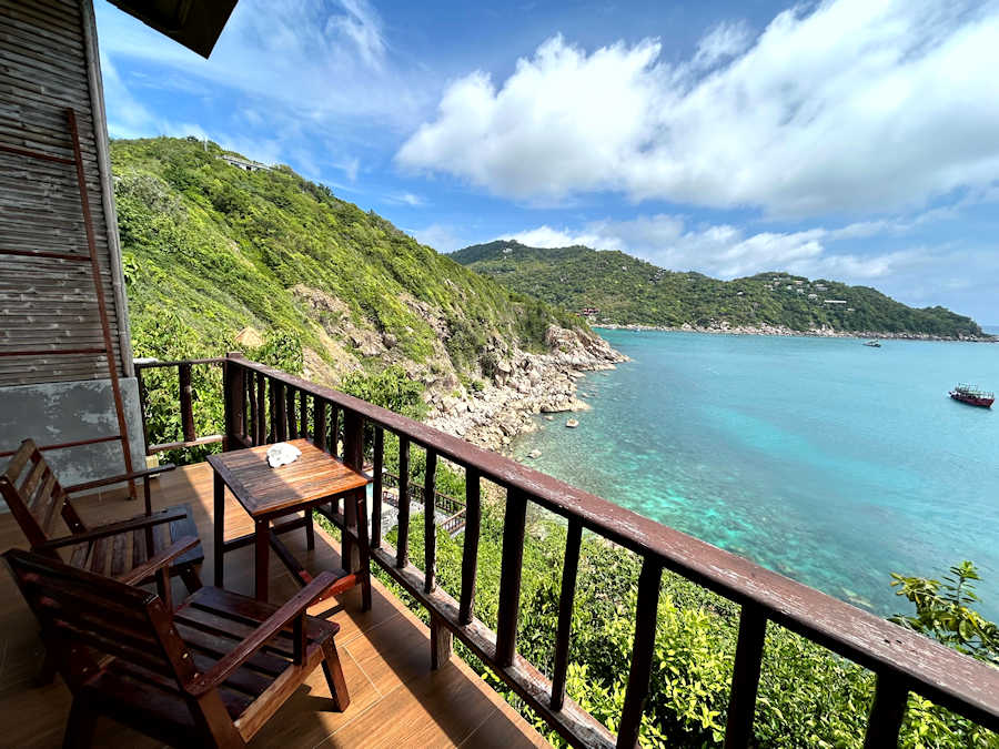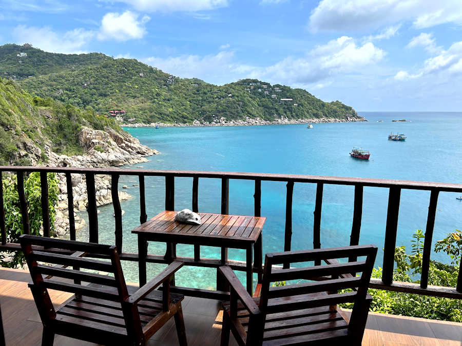 Wow, solch spektakuläre Ausblicke! Die Lage des Sai Daeng Resort ist einmalig. Was für ein wunderschöner Ort, um auf Koh Tao zu wohnen, zu relaxen und die einmalige Schönheit dieser besonderen Insel zu erleben. Wir haben uns hier sofort wohl gefühlt. Mein Blick schweift über die Bucht aufs Meer hinaus, dazu die Bergkulisse der Insel, eine warme Brise und das klare Wasser - welch schöne Plätze es doch in Thailand gibt!