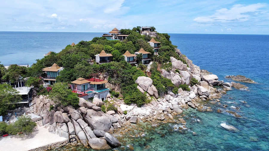 Das Sai Daeng Resort ist in Zonen eingeteilt. Ganz vorne an der Spitze der Landzunge befindet sich die Zone A, dort liegen die Poolvillen des Hotels. Der Swimmingpool liegt erhöht in Zone B und man hat von der Sonnenterrasse aus einen klasse Blick über das Meer und die südliche Küste der Insel Koh Tao.