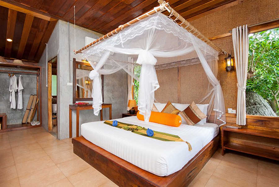 Das Naturmaterial Teakholz dominiert die Villen. Diese sind recht geräumig und haben eine große Terrasse, auf der sich bequeme Sitz- und Liegemöglichkeiten befinden, sozusagen das Freiluft-Wohnzimmer. Die Villen sind gemütlich und komfortabel ausgestattet.