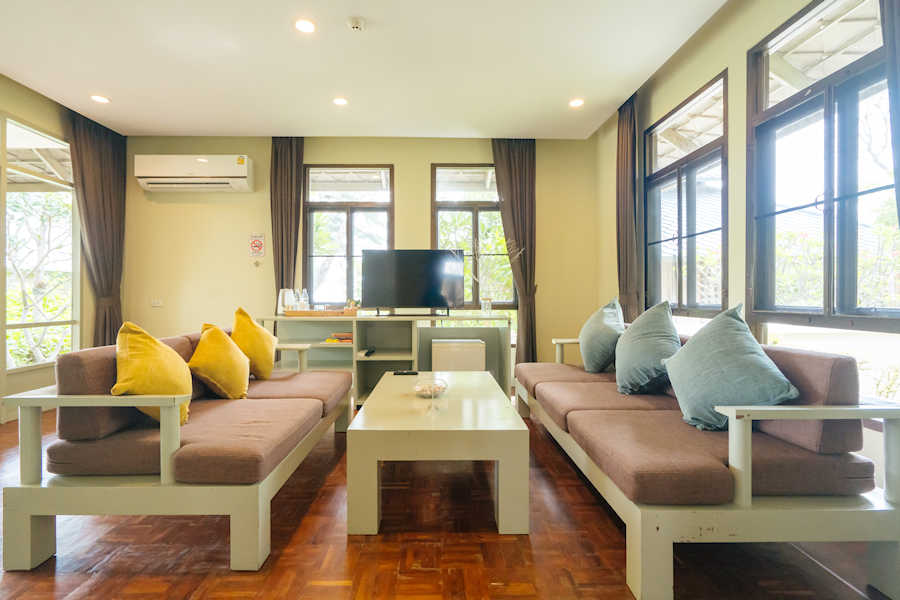 Im Sirarun Resort gibt es 16 geräumige Villen, die sich über den großen tropischen Garten verteilen. Ganz vorne am Strand, sozusagen als Wohn-Highlight dann noch vier große Poolvillen mit eigenem Garten und privatem Swimmingpool.