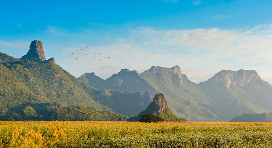 Der wunderschöne Nationalpark Khao Sam Roi Yod ("Berge der 300 Gipfel") bietet eine kontrastreiche Landschaft mit Meer, Sand, Marschen, Mangrovenwälder, Bergen und Höhlen. Seine Besonderheit sind die vielen, charakteristisch geformten Kalksteinspitzen - die höchste ragt 605 Meter auf.