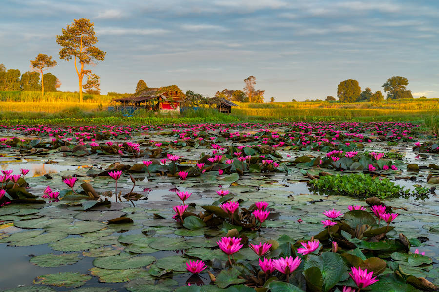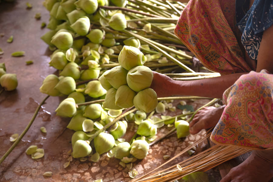 Nach der Abholung in Ihrem Hotels in Bangkok begeben wir uns auf eine landschaftlich reizvolle Reise in die Provinz Nakhon Pathom zum Wat Suwannaram Pier. Von hier aus starten Sie Ihre Fahrt mit einem Longtail-Boot auf dem Mahasawat-Kanal. Hier erleben Sie eine ruhige, ländliche Landschaft abseits der üblichen Touristenpfade. Wir halten an einer der größten Lotosplantagen der Region, wo diese Pflanzen gezüchtet und verarbeitet werden, bevor sie auf den berühmten Blumenmarkt nach Bangkok gelangen. Abgerundet wird das Erlebnis durch den Besuch einer Obstplantage, wo Sie reife tropische Früchte probieren können.