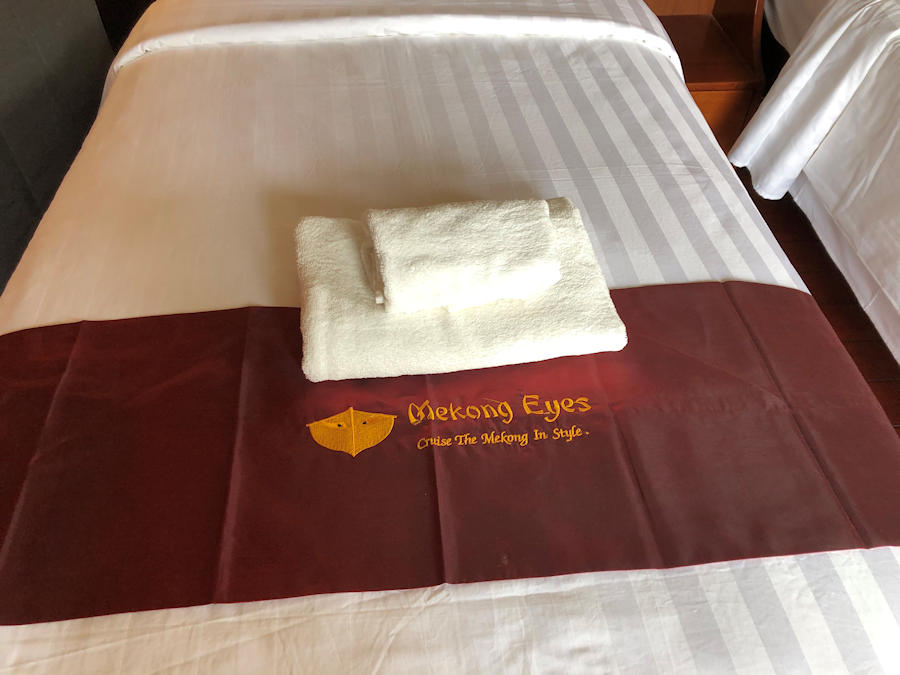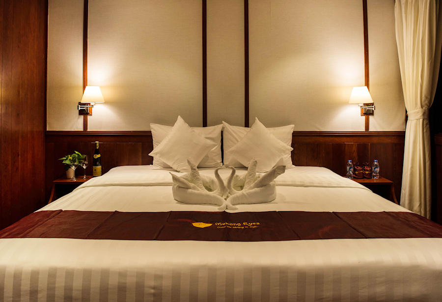 Das Schiff bietet auf ca. 250 m2 ausreichend Platz für bis zu 30 Passagiere. Es gibt 14 komfortabel ausgestattete Doppel- und Zweibettzimmer. Jede Kabine hat ein eigenes Badezimmer mit Dusche und warmem Wasser, Kleiderschrank, Klimaanlage und Ventilator. Die Zimmer sind wärme- und schallgedämmt und bieten alle eine grandiose Panorama-Aussicht auf den Mekong Fluss.