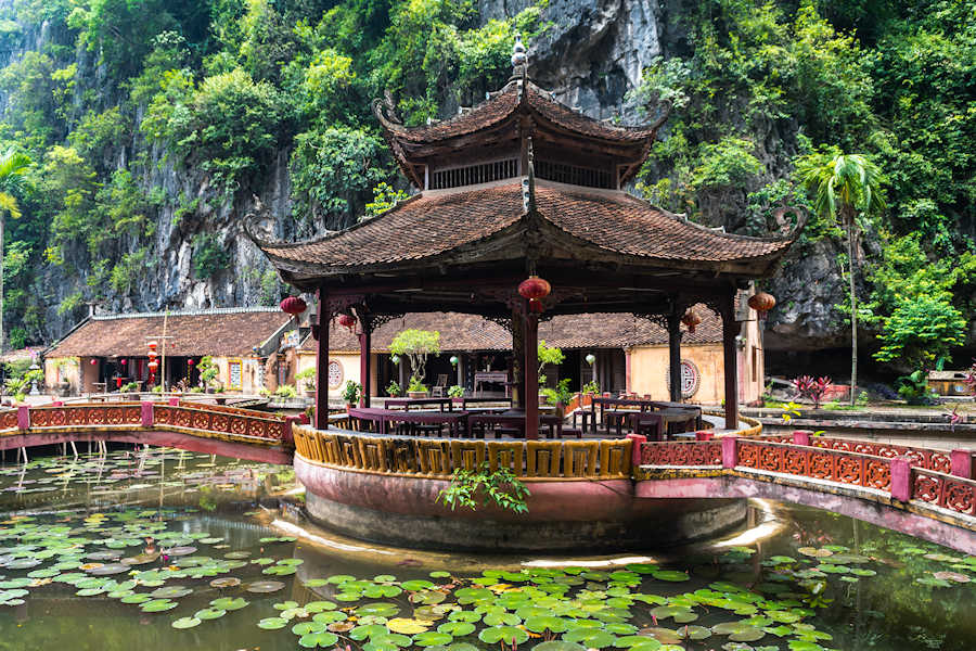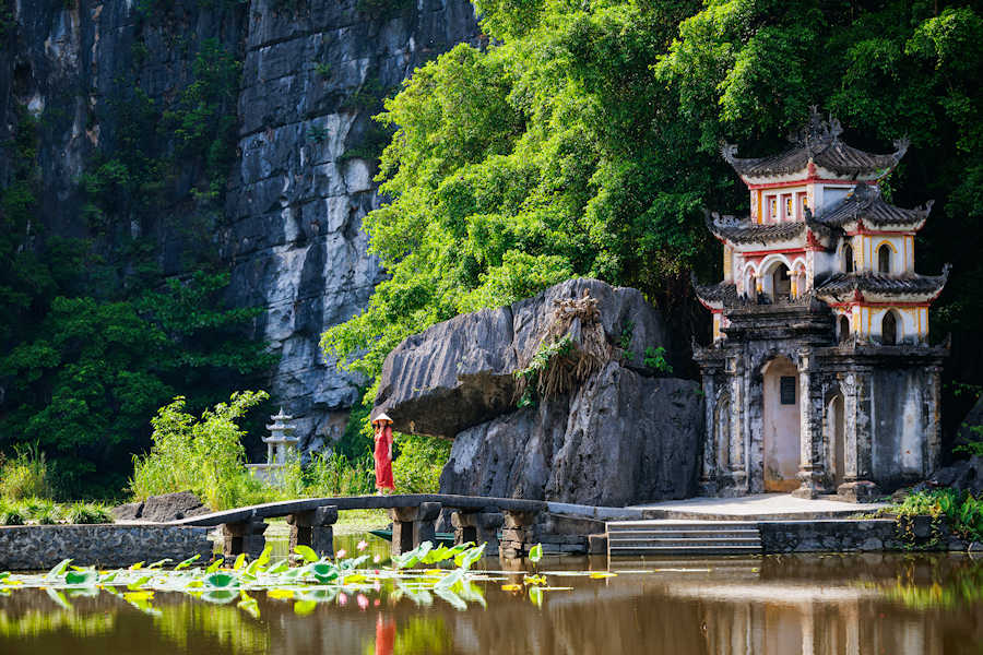 Heute Morgen verlassen Sie das Hotel um 08:00 Uhr für eine zweistündige Fahrt durch das ländliche Nordvietnam in die Provinz Ninh Binh - eine der atemberaubendsten Gegenden Vietnams mit ihren dramatischen Landschaften und historischen Tempeln. Die Reisfelder hier sind wunderschön (saisonabhängig) und die Gegend hat den Spitznamen "Trockene Halong-Bucht" verdient, ein Name, der durch die Kalksteinkarstfelsen welche die Landschaft dominieren, bestätigt wird.