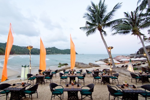 Das Strandrestaurant "Stone Beach Restaurant" verwöhnt zum Mittag und Abend mit thailändischen und internationalen Gerichten sowie abendlichem BBQ-Seafood.