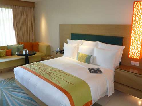 So wohnen Sie: Es gibt 150 Deluxe Zimmer, vier Suiten, 21 Pool Villen, vier Oceanfront Pool Villen und eine Oceanfront Pool Villa mit drei Schlafzimmern. Alle Zimmer, Villen und Suiten sind freundlich und hell gehalten und mit dem für ein 5-Sterne-Hotel heute üblichen Komfort ausgestattet. Sie verfügen entweder über Balkon oder Terrasse.