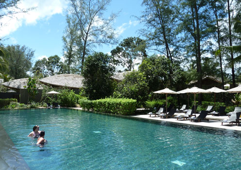 Der Mai Khao Strand fällt relativ steil ins Meer ab und ist in der Saison von November bis April normalerweise sehr gut zum Baden im Meer geeignet. In der Nebensaison zeigt sich das Meer hier öfter von seiner ungestümen Seite. Da machen Strandspaziergänge besonders viel Spaß, das Baden im Meer ist dann aber wegen gefährlicher Unterströmungen nicht möglich. Dafür kann man dann den eleganten Poolbereich genießen. Sonnenschirme und Liegestühle sind sowohl am Pool als auch im Bereich des Gartens ausreichend vorhanden.