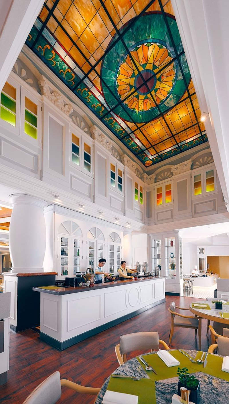 "Crossroads Bar“, strategisch günstig am Singapore River gelegen, lädt mit großen Fenstern vom Boden bis zur Decke, einer eleganten Atmosphäre und gut zubereiteten Getränken ein. Ideal auch für einen charmanten Nachmittagstee oder gesellige Stunden nach Einbruch der Dunkelheit, entdecken Sie asiatisch inspirierte Tapas und leckere Cocktails mit hausgemachten Sirups und Limonaden, mit Nuancen von lokalen Früchten und Gewürzen sowie Kräutern aus dem eigenen Garten.