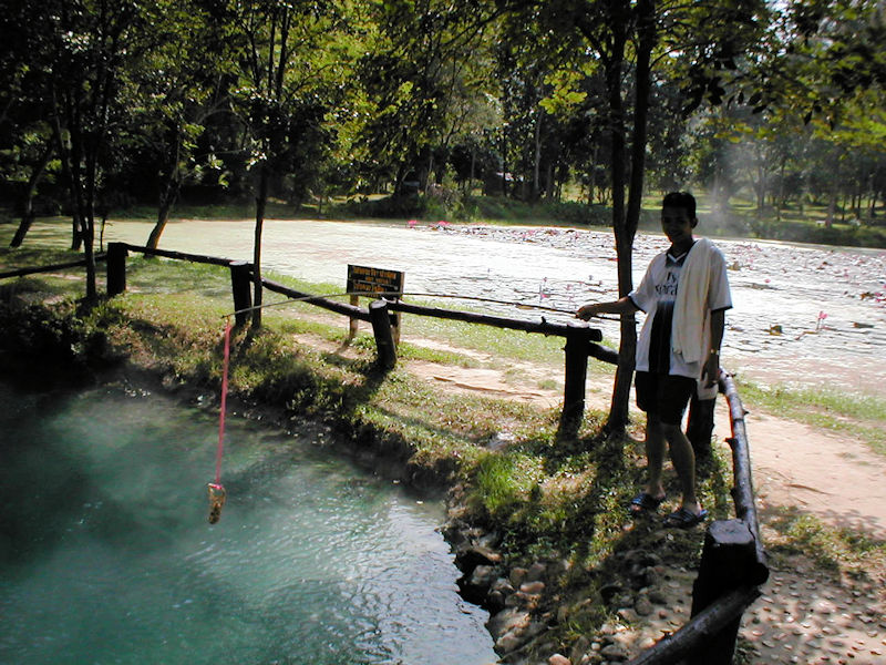 Eier kochen mit Angel in der heißen Quelle am Kok River