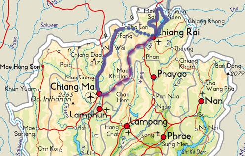 Diese Tour führt Sie in die landschaftlich schönsten Gegenden nördlich und nordöstlich von Chiang Mai. Sie unternehmen eine herrliche Flussfahrt auf dem Kok River, fahren auf einer Panoramastrecke in den Tee- und Kräuterort Doi Mae Salong, besuchen das legendäre Goldene Dreieck und können nach Herzenslust in Mai Sai an der Grenze zu Burma besonders günstig einkaufen.
