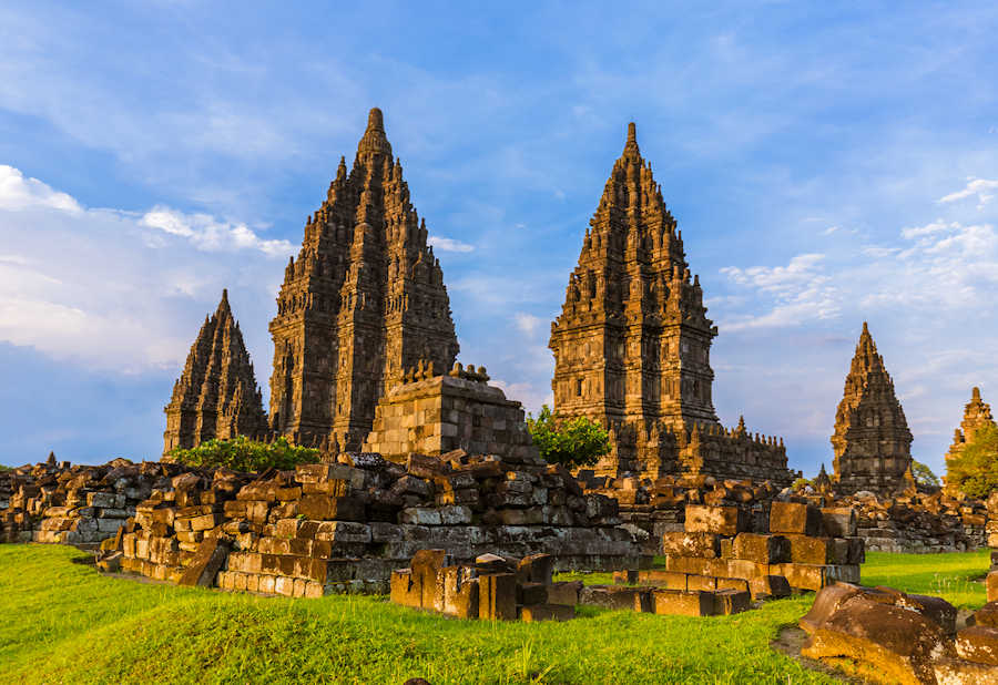 Nach dem Mittagessen fahren Sie zum riesigen Prambanan-Komplex, einer Reihe von Tempeln, die Mitte des 9. Jahrhunderts, etwa 50 Jahre nach dem Bau des Borobudur, errichtet wurden. Das Hinduheiligtum Prambanan, wurde im Jahre 856 fertiggestellt, im Volksmund auch "Loro Jonggrang" (schlanke Jungfrau) bezeichnet, ist den Göttern Shiva, Brahma und Vishnu geweiht. Basisreliefs, beginnend am östlichen Tor und im Uhrzeigersinn fortschreitend, erzählen die wundervoll lebendige und fesselnde Geschichte der hinduistischen Ramayana Sage. Über die frühe Geschichte des Komplexes ist nur sehr wenig bekannt, aber man nimmt an, dass er zum Gedenken an die Rückkehr einer hinduistischen Dynastie nach Java errichtet wurde. Die Tempel lagen Hunderte von Jahren in Trümmern, und erst in den 1930er Jahren wurde mit der Restaurierung begonnen.