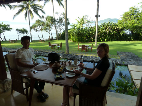 Kulinarisches: Das Seasalt Restaurant befindet sich in einem Pavillon, umgeben von einem Teich mit wunderschönen Lotusblüten. Hier wird ausschließlich Meersalz von der benachbarten Farm in Goa Lawah verwendet. Die Speisen reichen von modernen bis hin zu traditionellen indonesischen oder balinesischen Gerichten. Zudem verfügt das Alila Manggis über eine eigene Kochschule für balinesische Küche.