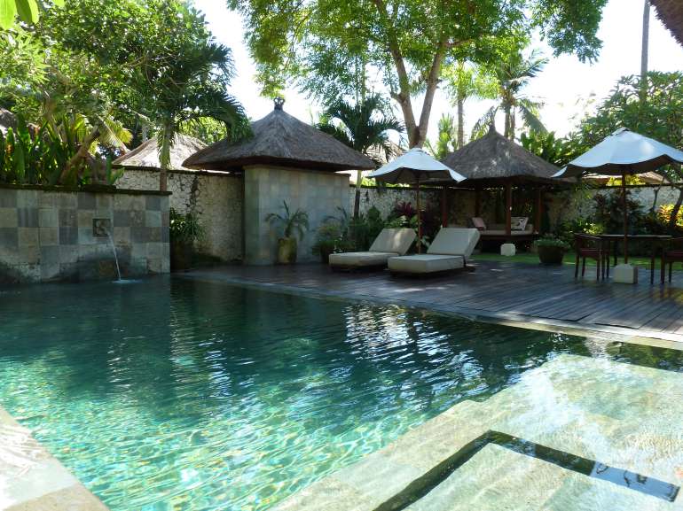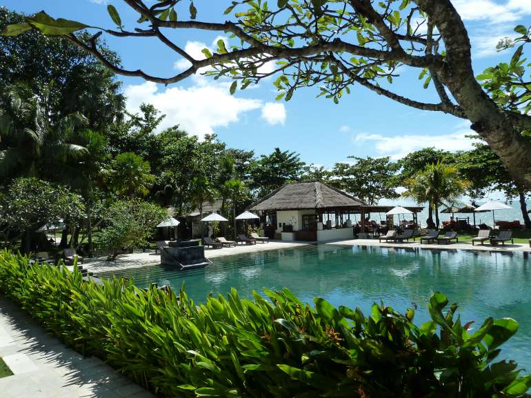 Unsere Meinung: Schmiegt sich wie ein kleines Dorf wunderschön an den Jimbaran Strand. Viel Ruhe, schönes Ambiente und Privatsphäre. Ein wohltuender Kontrast zu den sonst oft recht großen Luxushotels der internationalen Hotelketten.