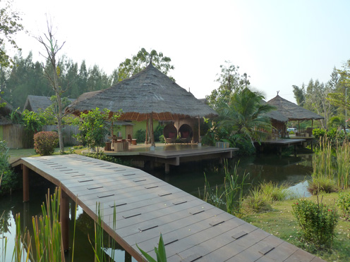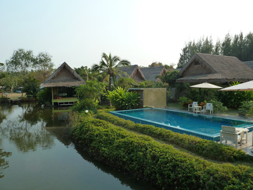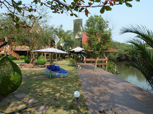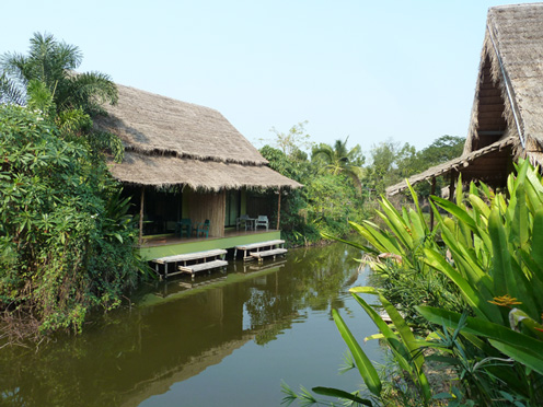 Eine gemütliche grüne Oase in der Garten- und Kanallandschaft bei Amphawa. Ein liebevoll gepflegter Garten, ein kleiner Pool und hübsche Bungalows und als Blickfang das Thai House mit Restaurant prägen den Charakter dieser aufmerksam geführten Anlage. Gerade mal gut 80 km von Bangkok entfernt ist man hier in einer anderen Welt. Die frische Luft, der anmutige Flair.