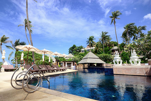 Strand & Pool: Das Resort liegt direkt unter Palmen am hellen Sandstrand des Maenam Beach. Vom Swimming-Point aus kann man das ganze Jahr über gut im Meer baden. Die schön gestaltete Poolanlage lädt zum Verweilen ein. Sonnenschirme und Liegen stehen für die Gäste zur Verfügung.