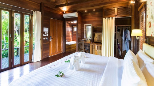 So wohnen Sie: Das Resort besteht aus 46 Einheiten, welche allesamt aus Holz sind und mit edlen Naturmaterialen ausgestattet wurden. Die neuen Lanai Deluxe-Bungalows (52 qm) liegen um den zweiten Pool im Lanai-Flügel und sind nur für Erwachsene (ohne Extrabett) buchbar.