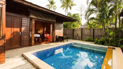 Größtmögliche Privatsphäre haben Sie in den wunderschönen Pool Villen (135-150qm) mit eigenem Swimmingpool & Jacuzzi. Dank eines Holzzaunes sind Cottages und der Open-Air- Wohnbereich nicht einsehbar.