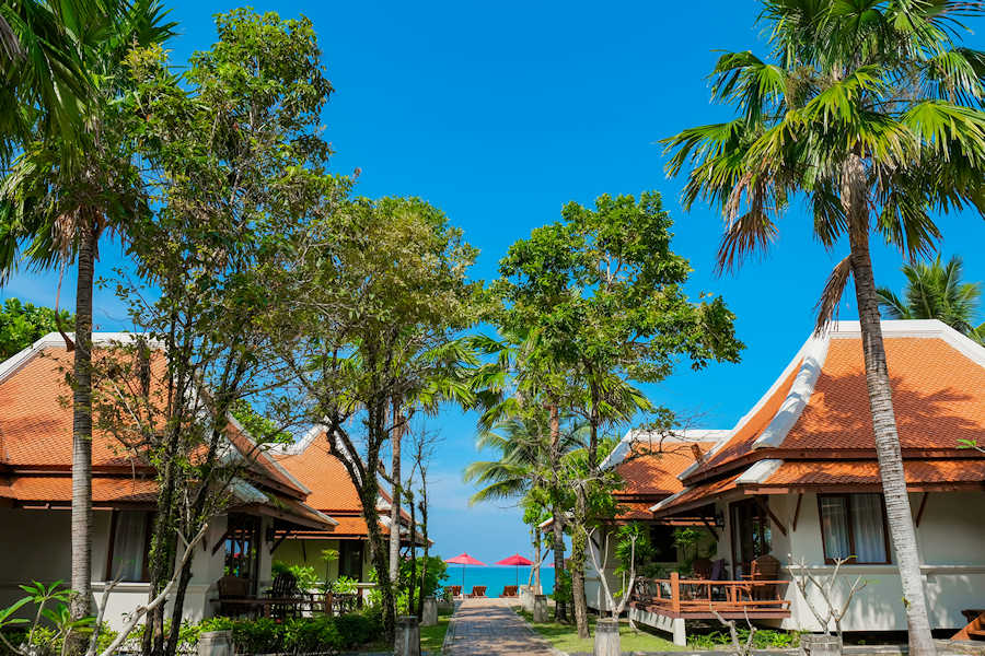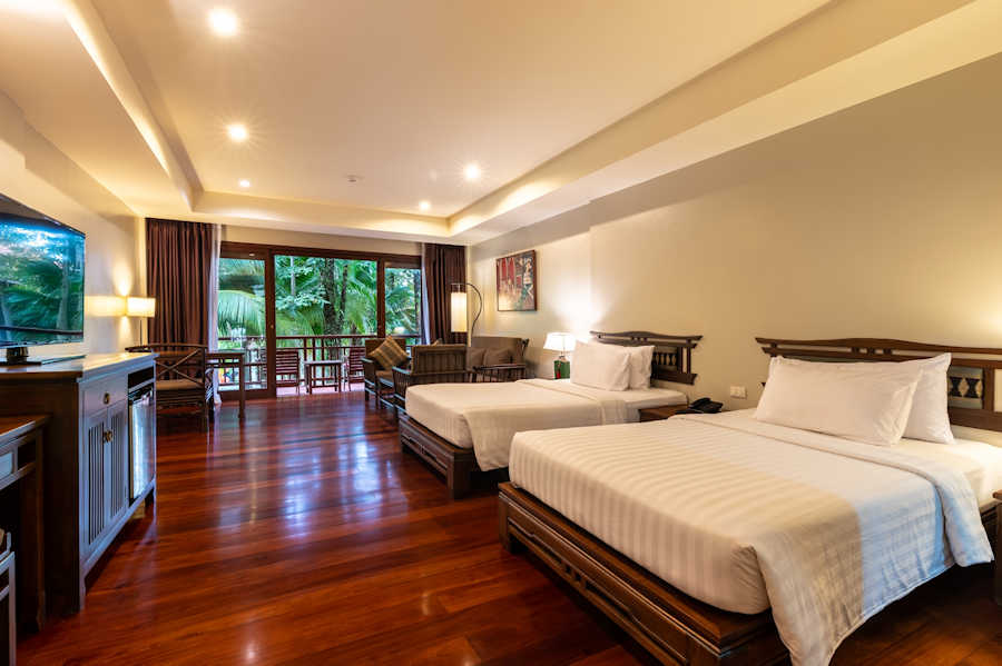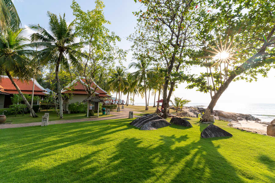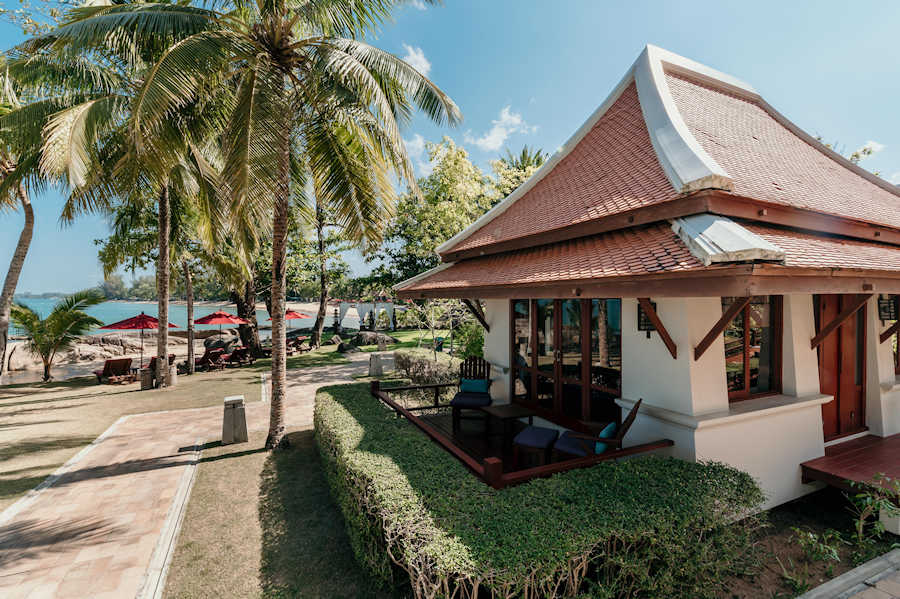So wohnen Sie: Gemütliches Ambiente und eleganter Komfort in warmen Farben mit viel Holz und thailändischen Accessoires zeichnen die 3 verschiedenen Zimmerkategorien aus. Die Siam Chalet (51qm) liegen im großzügigen Hotelgarten im Haupthaus mit Blick auf die Lagunenlandschaft.