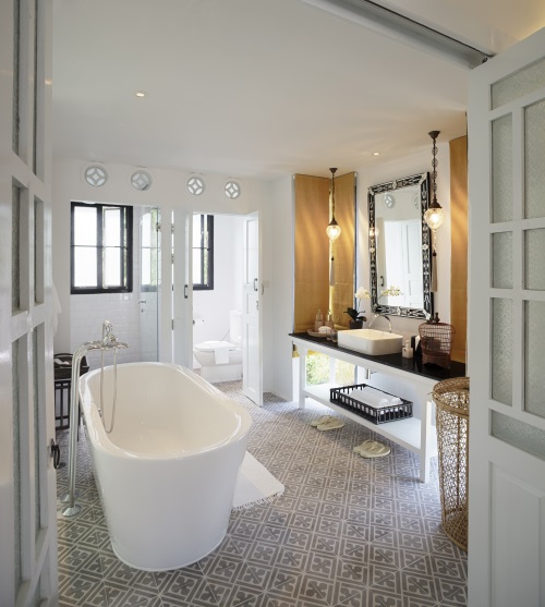Die 2014 neu erbauten Zimmer sind im sino-portugiesischen Stil und sehr hell eingerichtet: Die 38 Hibiscus Deluxe Zimmer (48 qm) befinden sich in den mehrstöckigen Gebäuden im ersten Obergeschoss, die 32 Hibiscus Grand Deluxe Zimmer (48 qm) liegen im obersten Stock und verfügen über eine tolle hohe Decke, die 14 Hibiscus Pool Access Zimmer (48 qm) liegen im Erdgeschoss und bieten direkten Zugang zum Pool.