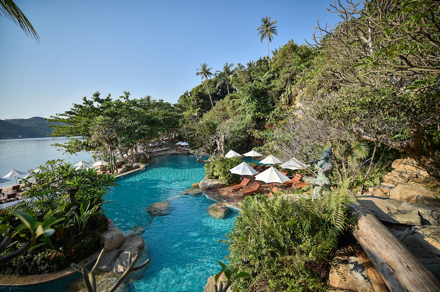 Inspiriert von der Natur und Leben in Harmonie mit Mutter Natur - das sind Philosophie und Vision dieses neuen traumhaften Luxusresorts an der malerischen Thong Nai Pan Bucht im Osten der Insel Koh Phangan. Und die Lage ist wirklich traumhaft. Das Resort zieht sich vom Strand den Hang hinauf und bietet fantastische Ausblicke auf Insel, Buchten und Meer.