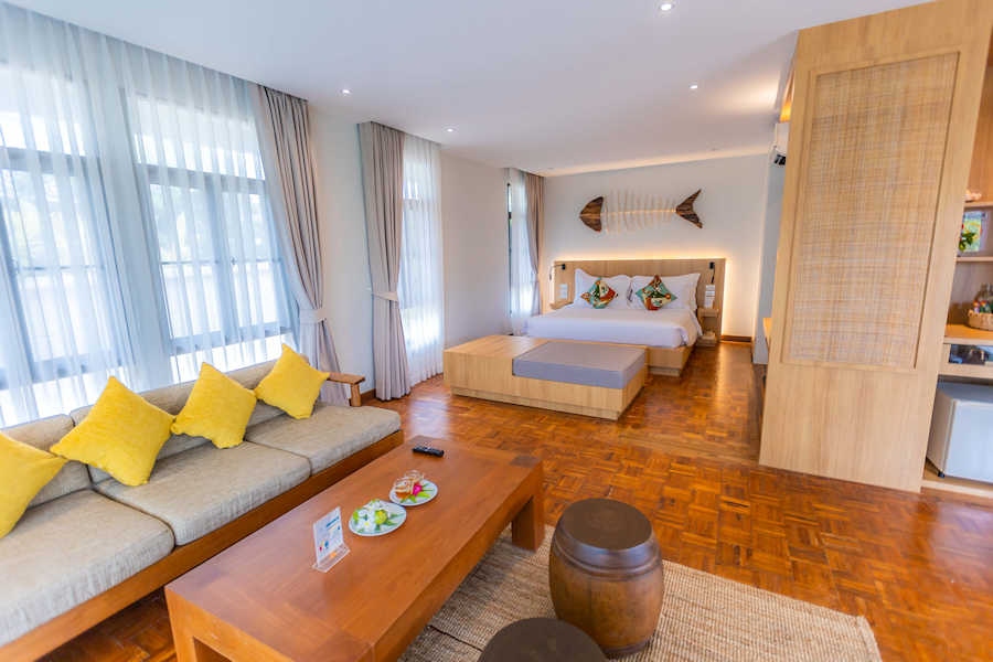Im Sirarun Resort gibt es 16 geräumige Villen, die sich über den großen tropischen Garten verteilen. Ganz vorne am Strand, sozusagen als Wohn-Highlight dann noch vier große Poolvillen mit eigenem Garten und privatem Swimmingpool.