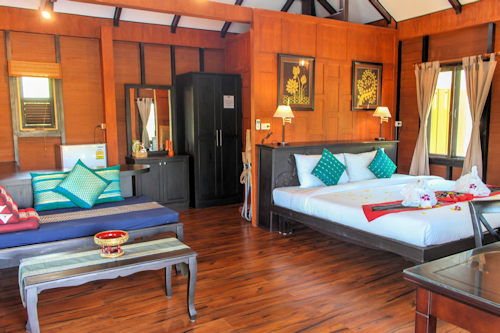 So wohnen Sie: Die traditionellen Bungalows im thailändischen Stil sind komfortabel und sehr geschmackvoll ausgestattet und bieten genügend Raum, um dort auch länger zu Verweilen. Für Langzeitaufenthalte ab 15 Nächten gibt es besondere Preisvorteile.