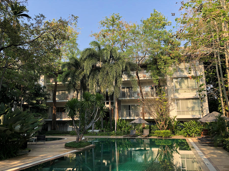 Eine grüne Oase in einem ruhigen Villenviertel gelegen. Man möchte hier kaum glauben dass man in Bangkok ist. Trotzdem sind das nächste Shoppingcenter, die Monorail-Station (gelbe Linie) sowie diverse Restaurants leicht zu Fuß erreichbar. Und der Flughafen Suvarnabhumi liegt ebenfalls sozusagen um die Ecke.