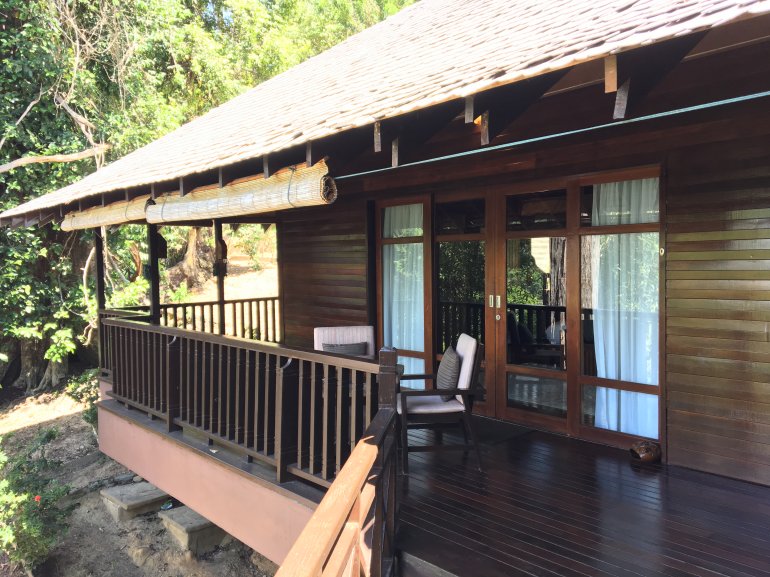 So wohnen Sie: Die Deluxe-Villen haben einen eigenen Wohn-Pavillion und ein sehr großes Schlafzimmer. Auf dem Balkon kann man bequem sitzen und auf's Meer schauen. Es ist an alles gedacht und es passt alles, vom Deckenventilator über das ansprechende Badezimmer bis hin zu Schreibtisch und ausziehbarer Wäscheleine auf dem Balkon. Abends dann Turndown-Service mit Anti-Mücken-Spirale für den Balkon und Mückenschutz im Zimmer. Das Personal ist hier überaus freundlich, lächelt, jeder grüßt.