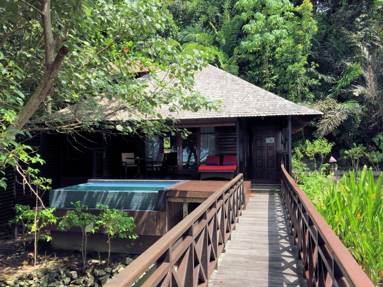 Im Bunga Raya Resort spürt man die Liebe des Besitzers zu jedem Detail. Die Teakholz-Villen passen auf diese Insel, fügen sich wunderbar in die Natur ein. Vom Meer aus kann man sie kaum erkennen.