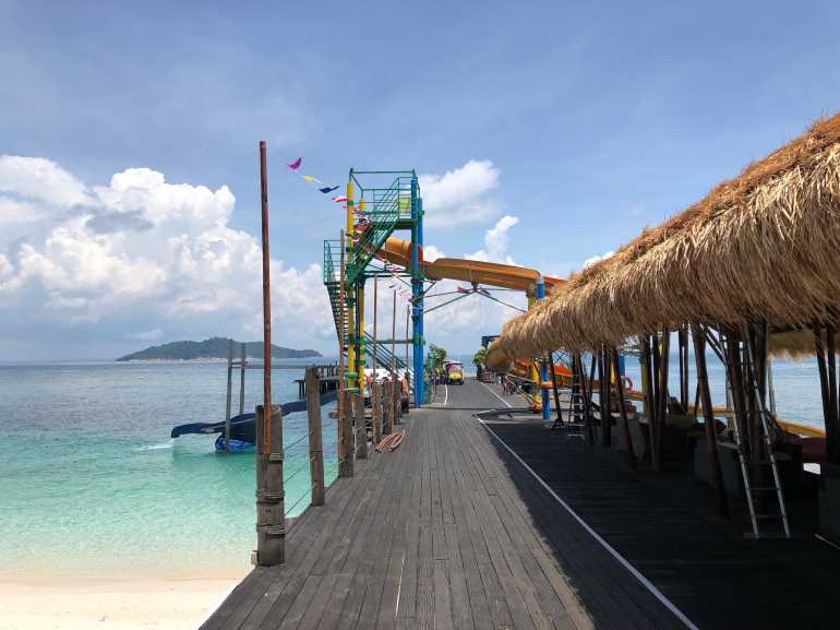Familien werden sich auf Rawa Island ebenfalls wohlfühlen. Die Kinder freuen sich schon beim Anblick der Wasserrutsche beim Pier. Zu beiden Seiten kann man hier ins klare saubere Wasser der Bucht gleiten. Das macht Spaß.