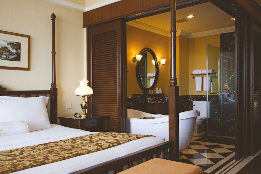 Die stilvolle Eleganz der Kolonialzeit wird im The Majestic Malacca regelrecht zelebriert. Das beginnt schon beim Check-In. Man wird vom Pagen auf‘s Zimmer gebracht und erhält dort eine detaillierte Erklärung aller Einrichtungsgegenstände. Und dann wird auch das Geheimnis gelüftet, was er in seinem kleinen Koffer mitbrachte. Es ist ein chinesisches Tee-Set und man bekommt seinen Begrüßungstee serviert.